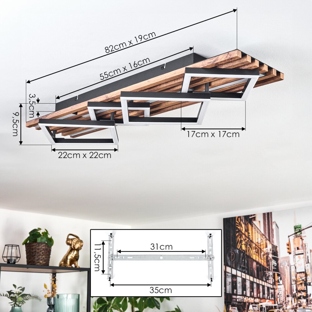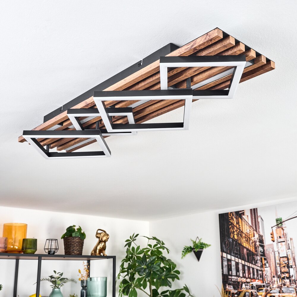 Ellekilde Plafonnier LED Brun, Couleur bois, Noir, 2 lumières
